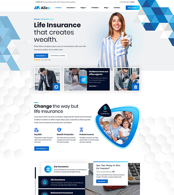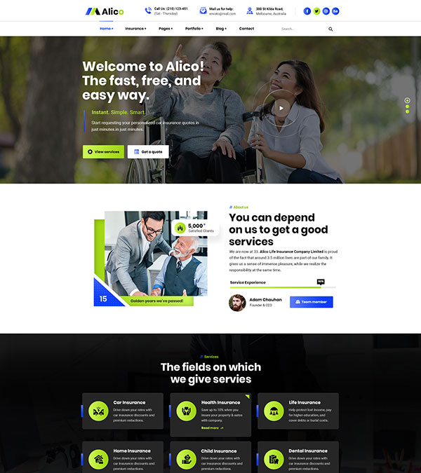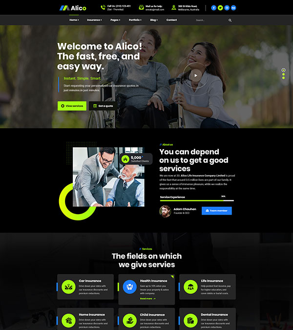 Alico is a Insurance business WP Theme. This theme is suitable for all corporate, insurance, banking etc business. Will be updated continuously in every month.
